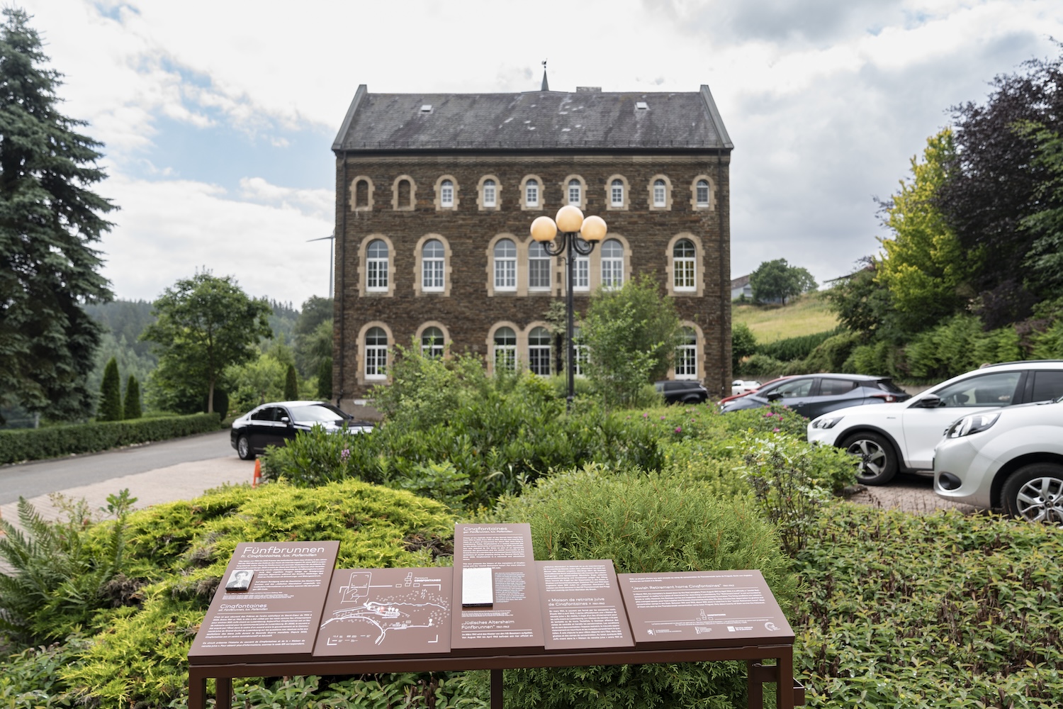 Pour la politique anti-juive au Luxembourg, la localité de Cinqfontaines joue un rôle central. C’est là que se trouve, à partir d’août 1941, la « Maison de retraite juive ». C’est là qu’arrivent, sur ordre de la Gestapo, la majorité des Juifs qui vivent encore au Luxembourg, dont de nombreux réfugiés d’Allemagne et d’Autriche. Par petits groupes, les gens sont amenés peu à peu par bus et par train dans le couvent désaffecté. Beaucoup espèrent que l’on pourra y attendre la fin de la guerre ou l’émigration outre-mer, à l’abri de nouvelles violences et déportations. En effet, la « Maison de retraite juive » devient une sorte de lieu de rassemblement pour environ 300 Juifs. Ce sont surtout des personnes âgées et des malades – encadrés par des internés plus jeunes – qui y vivent dans des conditions inhumaines. La « Maison de retraite » est dirigée par Hugo Heumann, un réfugié juif allemand. Le manque de place, la faim et les maladies caractérisent le quotidien. La « Maison de retraite » est certes un peu éloigné de Troisvierges, mais son existence n’est nullement tenue secrète. En principe, tout le monde a libre accès à la Cinqfontaines, car il n’y a aucune surveillance. La Gestapo et les collaborateurs nazis locaux effectuent des visites de contrôle redoutées parmi les pensionnaires, qui se terminent souvent par des brimades.